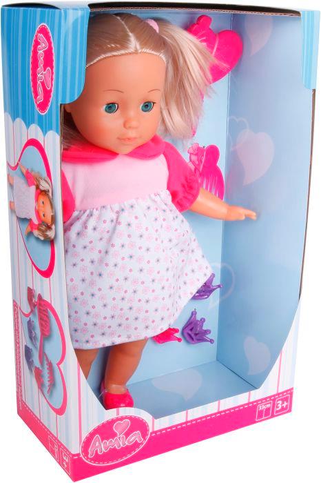 Amia Puppe mit Haar, Größe ca. 33 cm. Inklusive Zubehör wie Bürste, Spangen und Zopfbänder. Das Haar ist leicht kämmbar. Für Kinder ab 3 Jahren.
