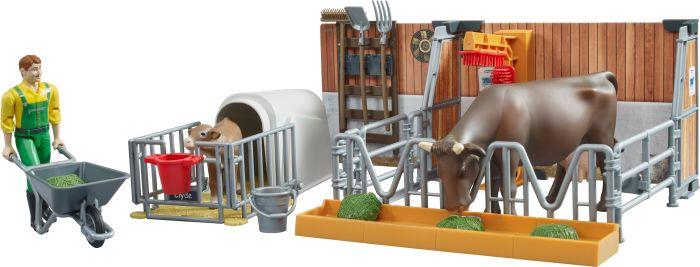 Im Bereich der Landwirtschaft gibt es freudigen Zuwachs. Neben den bereits bekannten Kühen und Bullen, gibt es neu im Sortiment von BRUDER das passende Kälbchen. Das nagelneue bworld Themenset Kuh- und Kälberstall beinhaltet eine moderne Stallung für die Kuh mit Futtertrog und Massagebürsten. Für die sichere Unterkunft des Kalbes ist eine Kälberbox mit Trinkeimer enthalten. Bestens umsorgt werden beide Tiere vom ebenfalls enthaltenen Landwirt, der mit Schubkarre und Zubehör sowohl für die Fütterung, als auch für die Reinigung des Stalls sorgt. Aus dem umfangreichen, landwirtschaftlichen Sortiment von BRUDER passt als Ergänzung z. B. der Claas Nectis 267F mit Frontlader und Bordwandanhänger (Art.-Nr. 02112) oder auch der Schäffer Hoflader mit Ballengreifzange und Rundballen (Art.-Nr. 02192) bestens dazu. bworld, das ist die Spielwelt von BRUDER. Diese besteht aus beweglichen Figuren, Tieren, Zubehören und neuestens auch aus Themensets und ist den bekannten BRUDER Kategorien zugeordnet. Ob als Fahrer, Reiter, Wassersportler, in der Krankenstation oder Motorradwerkstatt, bworld Artikel bieten schon alleine jede Menge Spielspaß und sind die ideale Erweiterung zu den detailgetreuen Fahrzeugen. Mit den neuen Themensets taucht man noch tiefer in die Bruderwelt ein. Bedruckte Wandelemente mit einfach zu montierenden Stellfüßen bilden nun den Raum für noch mehr Realität beim Spielen und mit dem neuen Regalsystem lässt sich auch mit den Elementen interagieren.